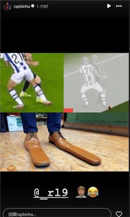 一次争议吹罚断送了巴萨七连胜,赛后拉菲尼亚在社交媒体为莱万p上60码长的大鞋更是让这份黑色幽默达到高潮。