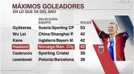 北京时间11月15日,欧国联b级联赛第五轮,挪威客场4-1击败斯洛文尼亚,哈兰德破门。据espn统计,哈兰德2024年在国家队和俱乐部比赛中共打进42球,排名2024年进球榜并列第二。哲凯赖什打进53球,排名第一。