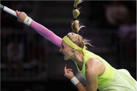 11月20日,斯洛伐克选手什拉姆科娃在比赛中回球。她以0比2不敌意大利选手保利尼。