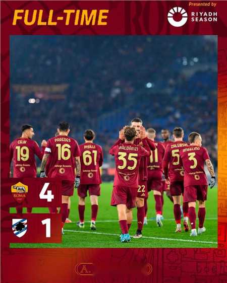 在意大利杯1/8决赛中,罗马依靠多夫比克的梅开二度以及巴尔丹齐和肖穆罗多夫的进球主场4-1战胜桑普多利亚,顺利挺进意杯8强。