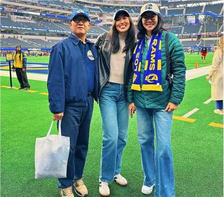 郎平指导这次现身,并不是出现在排球赛场。而是出现在美国橄榄球的比赛赛场。一家三口子是去观看比赛的。媒体报道的照片上,郎平指导带着女儿以及丈夫王教授一起出现。女儿白浪站在中间,她长发披肩,穿着黑色的夹克,下身是一条蓝色的牛仔裤。脚上是一双白色的鞋子。白浪的右手边是王教授。他戴着蓝色的棒球帽,上身穿着蓝色的外套,下身是深色的长裤,脚上穿着土色的运动鞋。郎平指导在白浪的左手边。她戴着白色的棒球帽,穿着绿色的外套,下身是蓝色的牛仔裤,脚上是白色的运动鞋。脖子上还围着围巾。而且郎平指导烫着大波浪头发,显得非常年轻。镜头前的郎平指导,皮肤光滑,甚至有球迷调侃她和女儿像姐妹一样。看得出来,郎平指导的退休生活非常惬意!不少球迷都纷纷点赞!